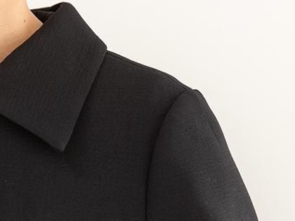 左右の襟の間が適度に開いていて、アクセサリーとも調和するデザインに。