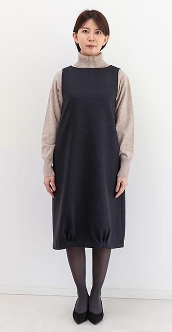 裾タックが生み出す自然な丸みのシルエット。裾に入れたタックが身体のラインを拾いにくい"すぼまりライン"を形成。ふんわりカバーしつつすっきりとした印象に。